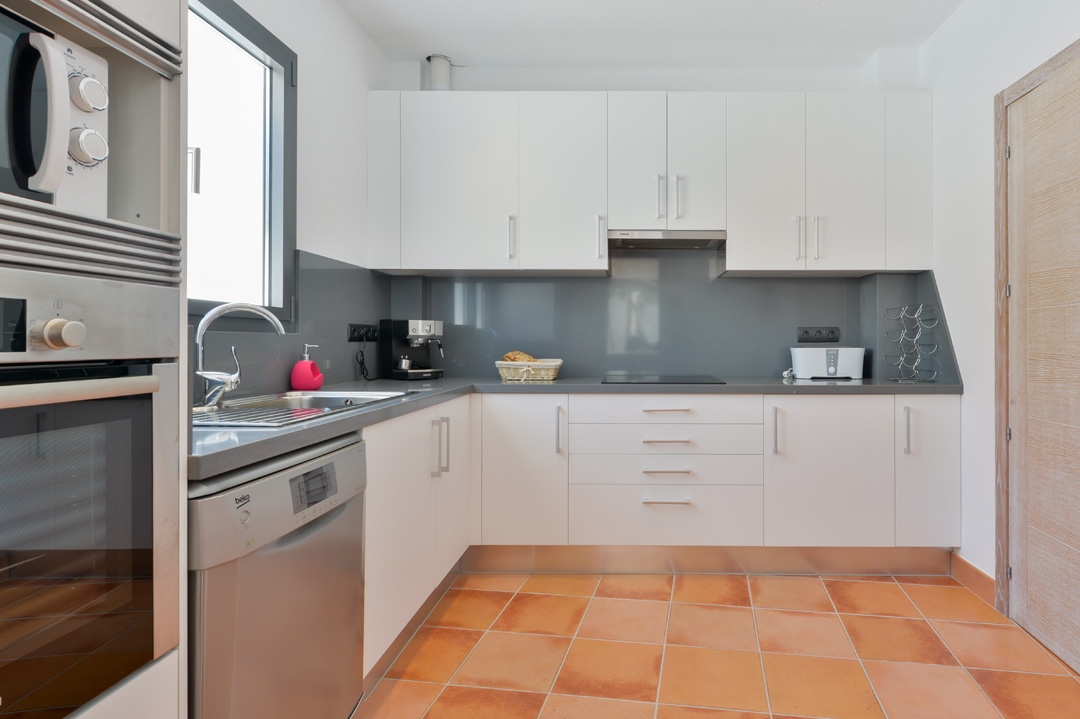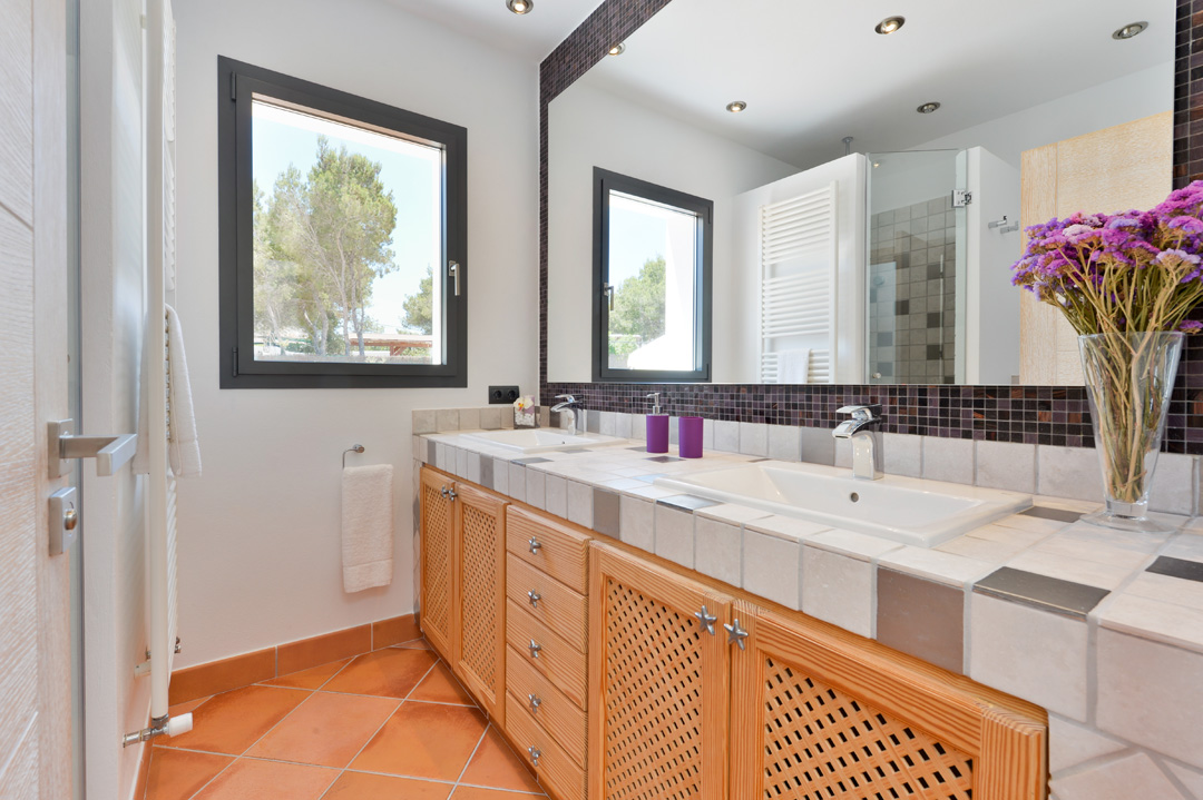 Three double bedrooms: main bedroom has king size bed. bedroom #2 has a double bed and bedroom #3 two single beds. All rooms have their own en suite bathroom and there is an additional WC with sink.